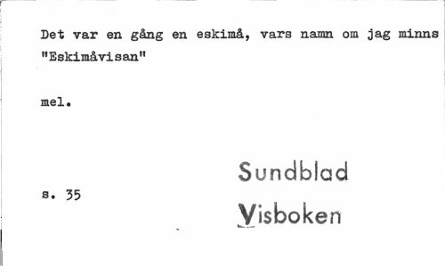 //// Det var en gång en eskimå, vars namn om jag minns "Eskimåvisan" //// mel. //// Sundblad //// S. 35 //// Visboken ////