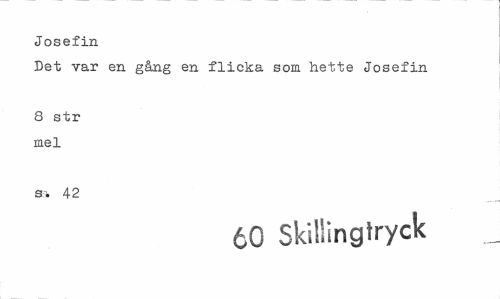 //// Josefin //// Det var en gång en flicka som hette Josefin //// 8 str mel //// s. 42 //// 60 Skillingtryck ////