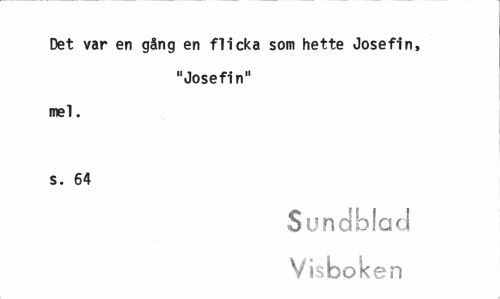 //// Det var en gång en flicka som hette Josefin, "Josefin" //// mel. s. 64 //// Sundblad Visboken ////