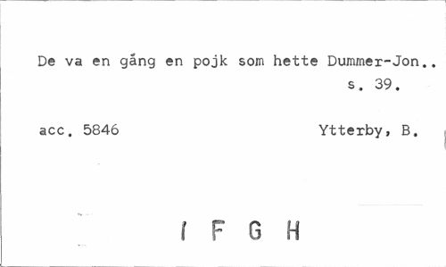 //// De va en gång en pojk som hette Dummer-Jon.. //// s, 39. //// acc. 5846 Ytterby, B. //// IFGH ////