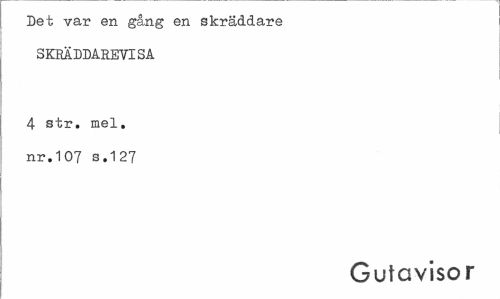 //// Det var en gång en skräddare 3KRÄDDAREVISA //// 4 str. mel. nr.107 s.127 //// Gutavisor ////