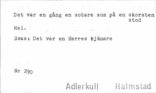 //// Det var en gång en sötare som på en skorsten //// stod //// Mel. //// Svas; Det var en Herres tjänare Nr 290 //// Adlerkuil Halmstad ////