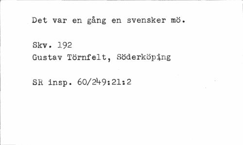 //// Det var en gång en svensker mö. Skv. 192 //// Gustav Törnfelt, Söderköping SR insp. 60/2^+9:21s2 ////