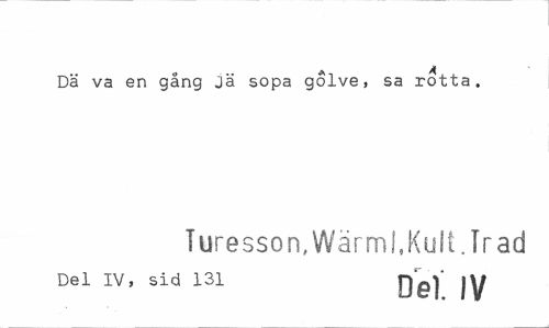 //// Dä va en gång Jä sopa golve, sa rotta. //// Turesson.Wärml.Kult.Trad //// Del IV, sid 131 g^j' jy ////