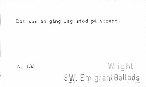 //// Det war en gång Jag stod på strand, //// s. 130 Wricht //// tiaf //// SW. Emigrant Ballads ////