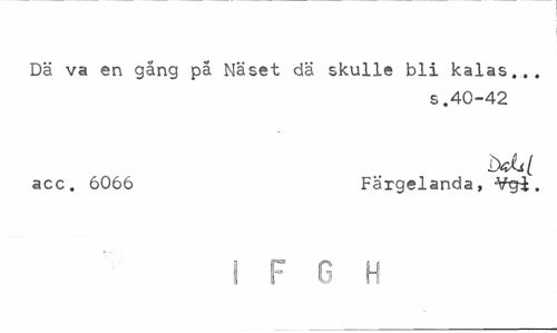 //// Dä va en gång pa Näset dä skulle bli kalas... //// s.40-42 //// acc. 6066 Färgelanda, ¥gi. //// IFGH ////