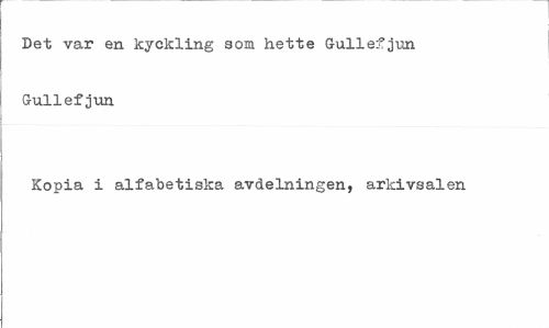 //// Det var en kyckling som hette G-ullefjun Gullefjun //// Kopia i alfabetiska avdelningen, arkivsalen ////