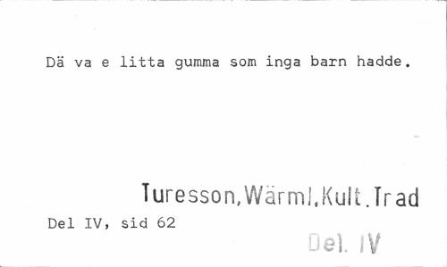 //// Dä va e litta gumma som inga barn hadde. //// Turesson, Wärml, Kult. Tr ad //// Del IV, sid 62 //// Del. IV ////