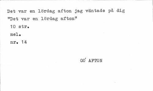 //// Det var en lördag afton jag väntade på dig "Det var en lördag afton" 10 str. mel. nr. 1 4 //// G0' AFTON ////