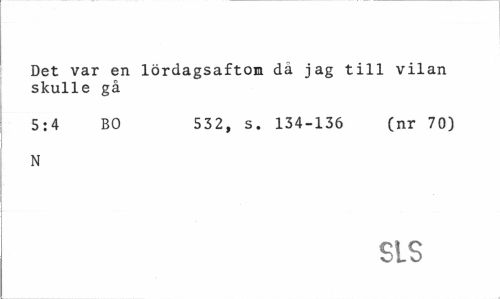 //// Det var en lördagsafton dä jag till vilan skulle gå //// 5:4 BO 532, s. 134-136 (nr 70) //// N //// SLS ////