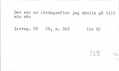 //// Det var en lördagsafton jag skulle gå till min vän //// 3:oreg. VÖ 28, s. 260 (nr 8) //// SLS * ////