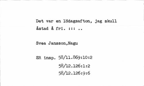 //// Det var en. lödagsafton, jag skull åstad å fri. s:: //// Svea Jansson,Nagu //// SR insp. 58/11.869:10:2 58/12.126:1:2 58/12.126:9:6 ////