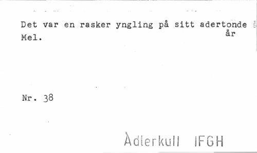 //// Det var en rasker yngling på sitt adertonde i Mel. år //// Nr. 38 //// Adierkull IFGH ////