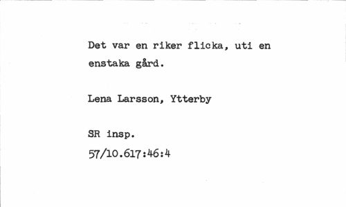 //// Det var en riker flicka, uti en enstaka gård. //// Lena Larsson, Ytterby //// SR insp. 57/10.617:46:4 ////