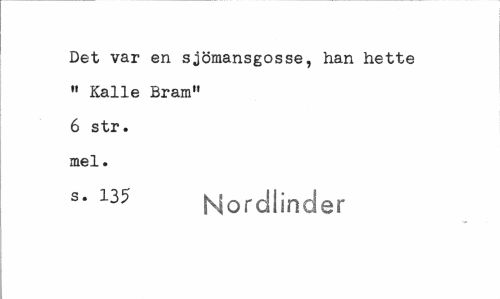 //// Det var en sjömansgosse, han hette » Kalle Bräm» 6 str. mel. //// s- 135 Nordlinder ////