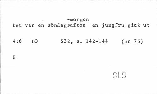 //// -morgon //// Det var en söndagsafton en jungfru gick ut 4:6 BO 532, s. 142-144 (nr 73) //// N //// SLS ////