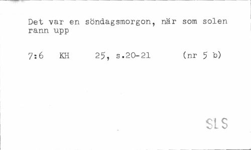 //// Det var en söndagsmorgon, när som solen rann upp //// 7:6 KH 25, s.20-21 (nr 5 b) //// SIS ////