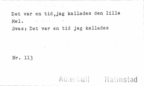 //// Det var en tid,jag kallades den lilla Mel. //// Svas: Det var en tid jag kallades Nr. 113 //// Acuer kull Halmstad ////