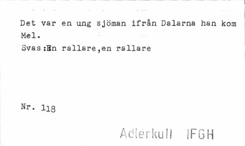 //// Det var en ung sjöman ifrån Dalarna han kom Mel. //// 3vas:Sn rallare,en rallare Nr. l18 //// Adlerkuil IFGH ////
