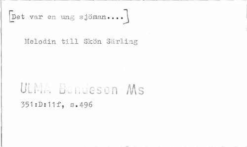 //// !~Det -var en ung sjöman...j Melodin till Skon Särling //// ULM<-. Bondeson Ms //// 351:D:11f, s.496 ////