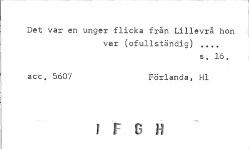 //// Det var en unger flicka från Lillevrå hon var (ofullständig) ... //// s. 16. //// acc. 5607 Förlanda, Hl //// 1 F B H ////