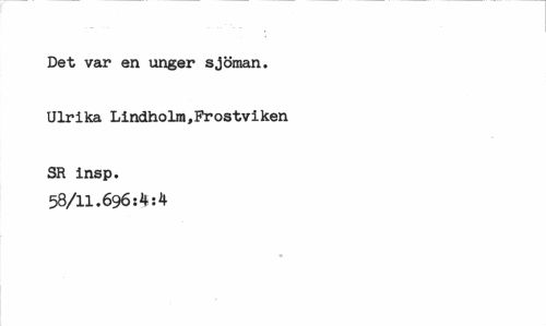 //// Det var en unger sjöman. Ulrika Lindholm,Prostviken //// SR insp. 58/11.696:4:4 ////