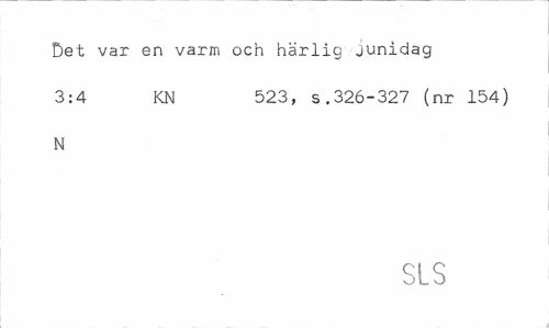 //// Det var en varm och härlig junidag //// 3:4 KN 523, s.326-327 (nr 154) //// N //// SLS ////
