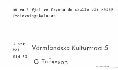 //// Dä va i fjol ve Grynna de skulle bli kalas Trolovningskalaset //// Mex Värmländska Kulturtrad 5 //// Sid 53 //// G Tnr^sson ////