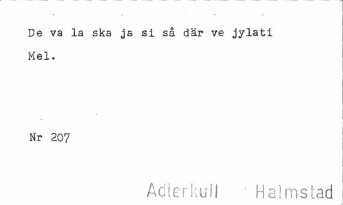 //// De va la ska ja si så dar ve jylati Mel. //// Nr 207 //// Adlerkuil Halmstad ////