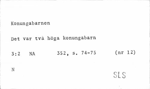 //// Konungabarnen //// Det var tva höga konungabarn //// 3:2 NA 352, s. 74-75 (nr 12) //// N //// SLS ////