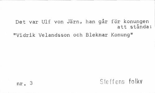 //// Det var Ulf von Järn, han går för konungen //// att stånda: //// "Vidrik Velandsson och Blekmar Konung" //// nr. 3 Steffens folkv ////