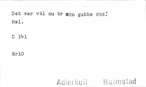 //// Det var väl nu är gubbe död.' Mel. //// D li+1 Nr 10 //// Adlerkuil Halmstad ////