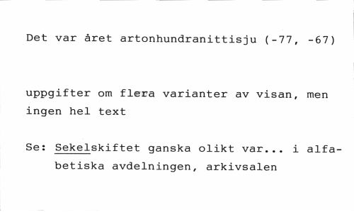 //// Det var året artonhundranittisju (-77, -67) //// uppgifter om flera varianter av visan, men ingen hel text //// Se: Sekelskiftet ganska olikt var... i alfabetiska avdelningen, arkivsalen ////