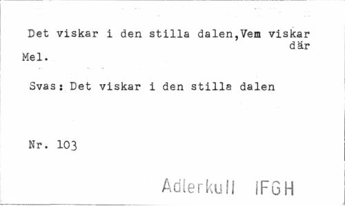 //// Det viskar i den stilla dalen,Vem viskar //// där //// Mel. //// Svas: Det viskar i den stilla dalen Nr. 103 //// Adierkull IFGH ////