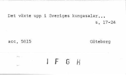 //// Det växte upp i Sveriges kungasalar.., //// s. 17-24 //// acc. 5815 Göteborg //// IFGH ////