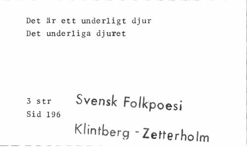 //// Det är ett underligt djur Det underliga djuret //// 3 str Svensk Folkpoesi //// Sid 196 //// Klintberg ~Zetterholm ////