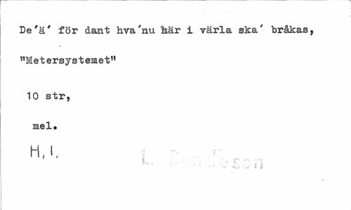 //// De'ä' för dant hva'nu bär i värla ska' bråkas, "Metersystemet" //// 10 str, mel. //// H, l, //// ; £ , : i ////