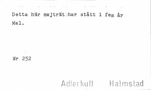 //// Detta här majträt :har stått i fem år Mel. //// Nr 252 //// Adlerkuil Halmstad ////