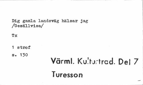//// Dig gamla landsväg hälsar jag /Gesällvisa/ //// Tx //// 1 strof s. 130 //// Vårml. Kah/rtrad. Del 7 Turesson ////