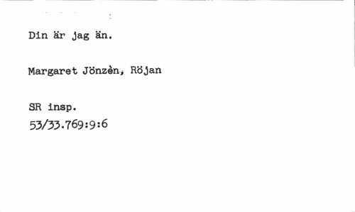 //// Din är jag än. //// Margaret J'onzén> Röjan //// SR insp. 53/33.769:9:6 ////