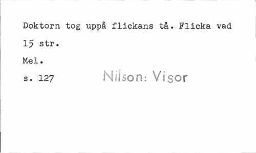 //// Doktorn tog uppå flickans tå. Flicka vad //// 15 str. //// Mel. //// s. 127 Nilson: Visor ////