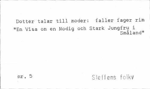 //// Dotter talar till moder: faller fager rim //// "En Visa om en Modig och Stark Jungfru i //// Smaland" //// nr- 5 Steffens folkv ////