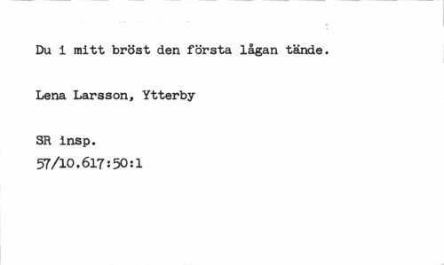 //// Du i mitt bröst den första lågan tände. //// Lena Larsson, Ytterby //// SR insp. 57/10.617:50:1 ////