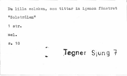 //// Dm lilla solsken, som tittar in igenom fönstret //// "Solstrålen" //// 1 str. //// mel. //// s. 18 //// Tegnér Sjung 1 ////