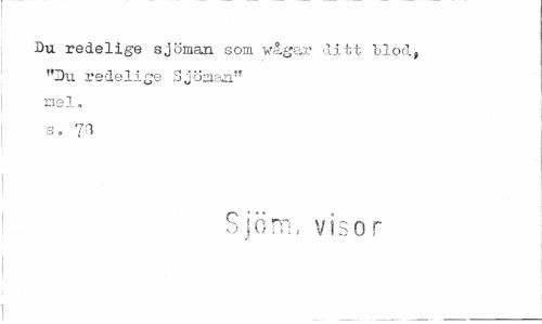 //// Du redelige sjöman som wågar ditt olod, "Du redelige Sjöman" mel, s. 71 //// Sjöm, visor //// i _ ////