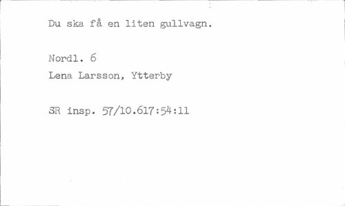//// Du ska få en liten gullvagn. Nordl. 6 //// Lena Larsson, Ytterby SR insp. 57/10.617:54:11 ////