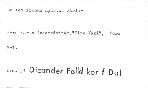//// Du som fromma hjärtan vårdar //// Pers Karin Andersdotter,"Finn Kari", Mora Mel. //// sid. 51 Dicander Folkl kor f Dal //// i ////
