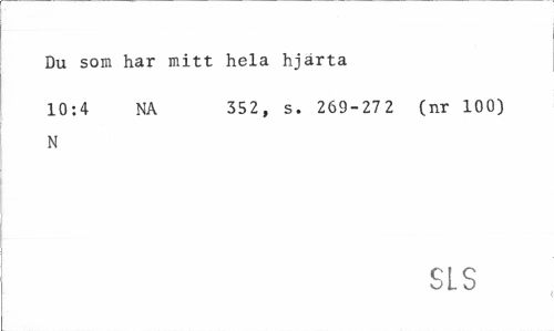 //// Du som har mitt hela hjärta //// 10:4 NA 352, s. 269-272 (nr 100) //// N //// SLS ////