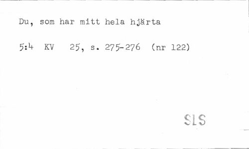 //// Du, som har mitt hela hjärta //// KV 25, s. 275-276 (nr 122) //// SLS ////