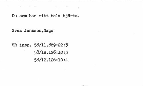 //// Du som har mitt hela hjärta. //// Svea Jansson,Nagu //// SR insp. 58/11.869:220 58/12.126:10:5 58/12.126:10:4 ////